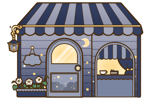 You walk up to the door of the building; You can hear a soft lullaby playing inside and the smell of coffee and sweets fills your nose.